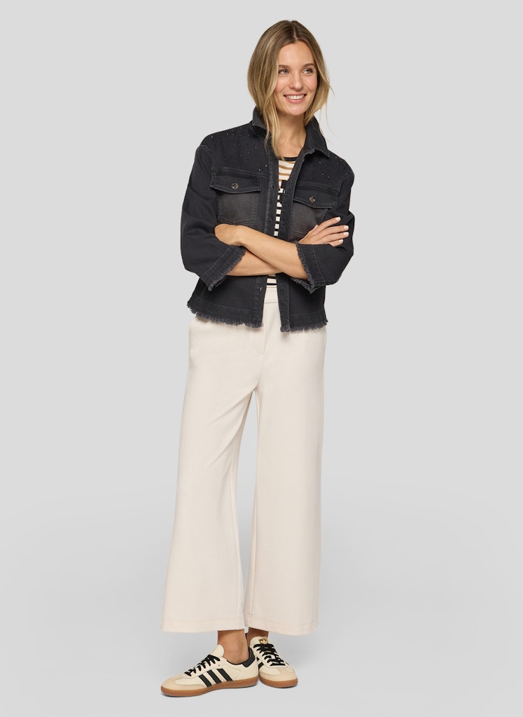 Эта джинсовая блузка с размытым внешним видом сочетает в себе современный образ с женственными деталями. Плечевая часть украшена стразами, которые создают ненавязчивые акценты. Прямой крой с рукавами 3/4 и бахромой придает модели модный характер. На спине также выделяется фирменная нашивка.