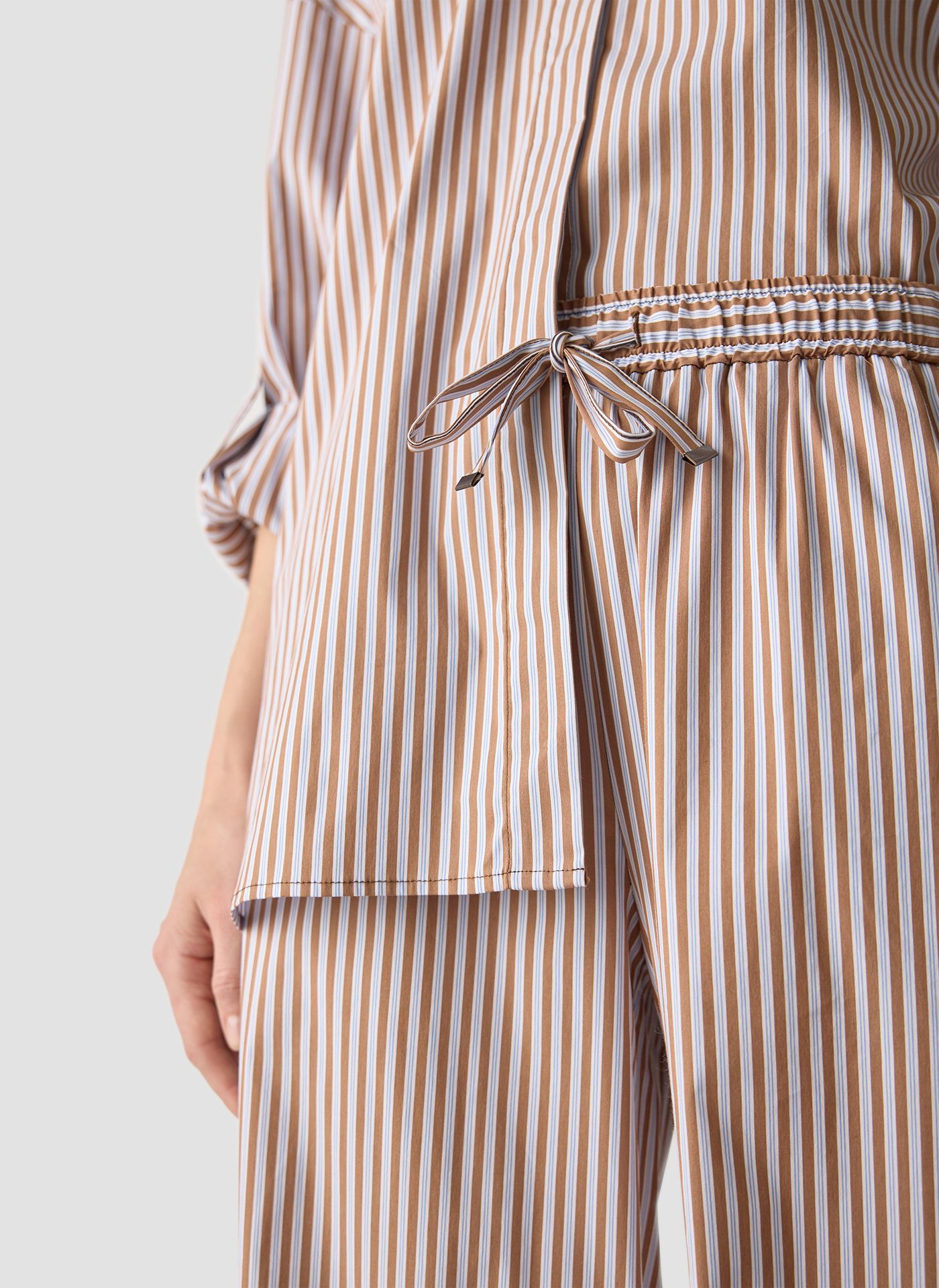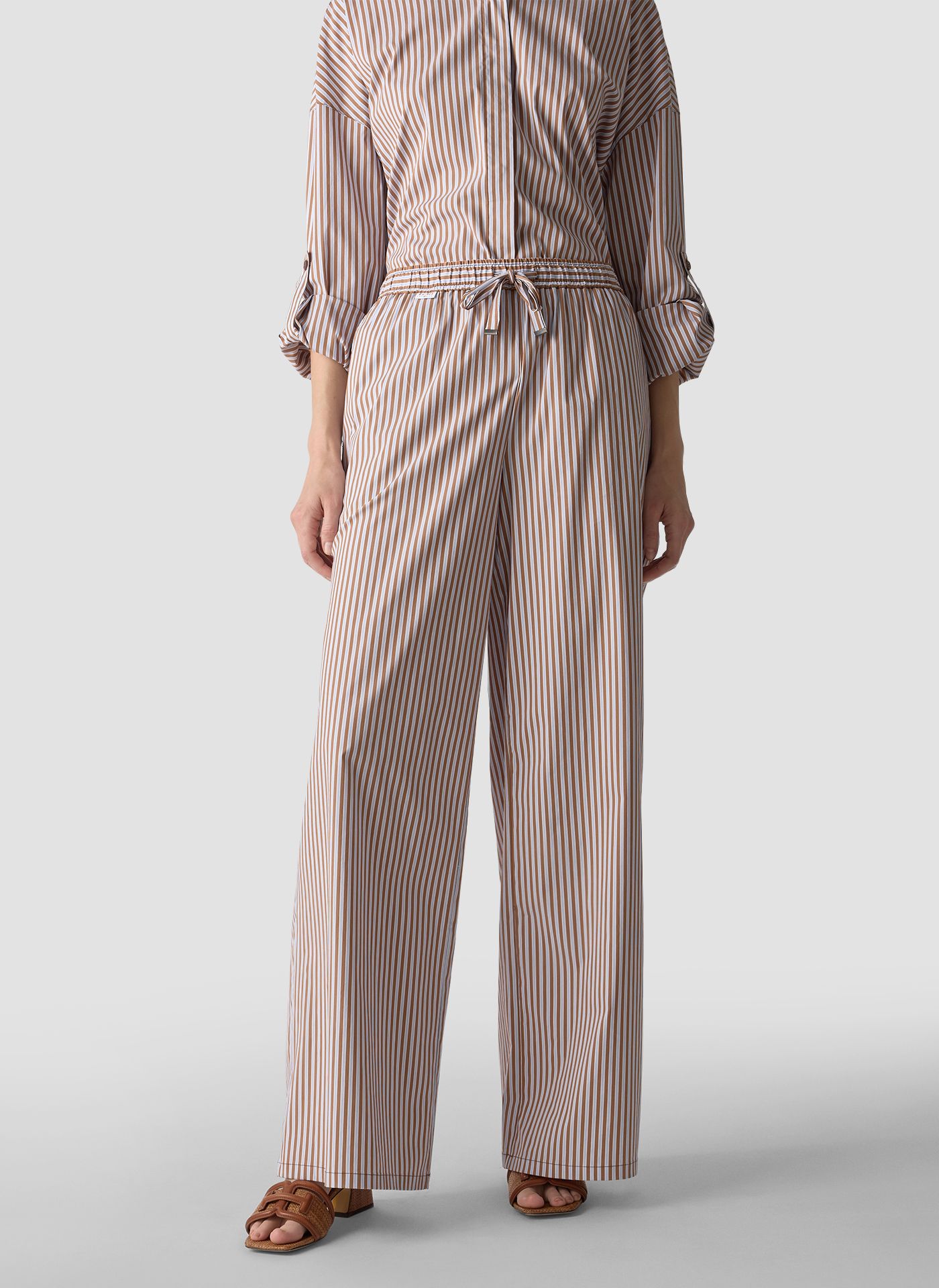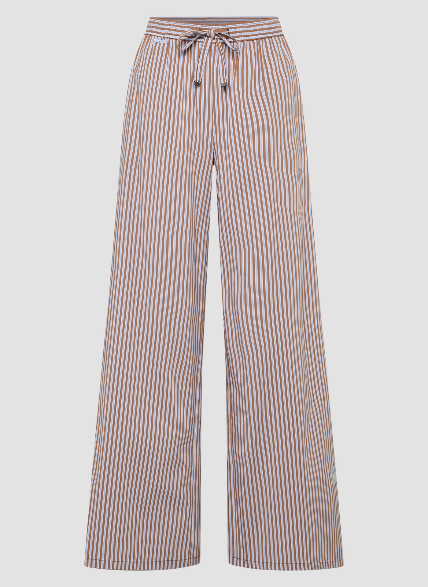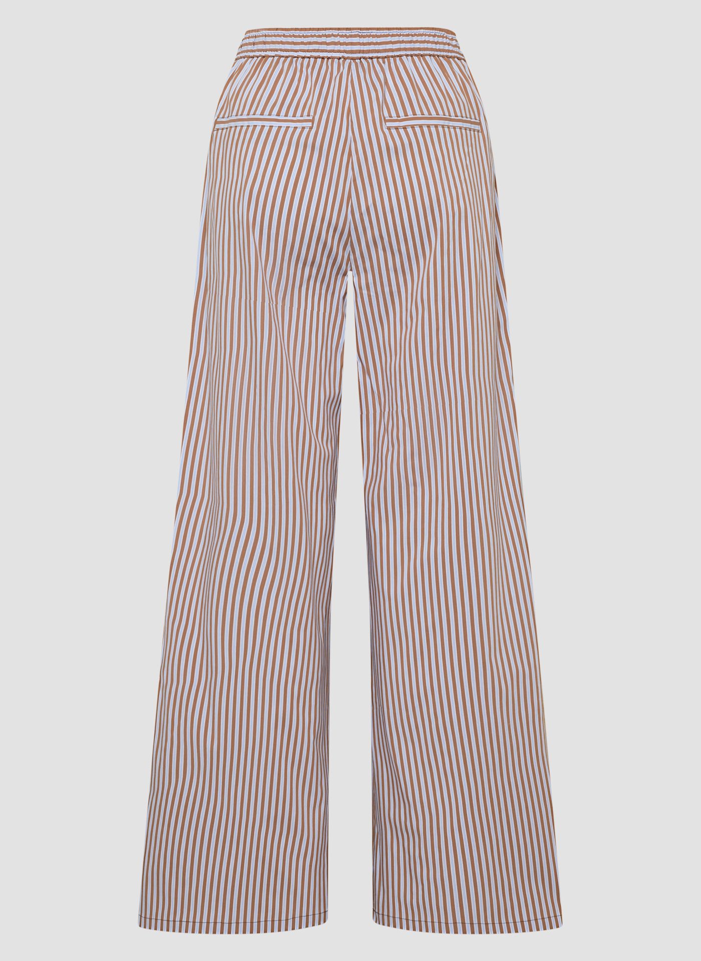Мягкие струящиеся брюки с высоким содержанием вискозы обеспечивают комфортное ношение и элегантный чехол. Эластичный пояс с завязывающейся лентой обеспечивает дополнительный комфорт и гибкую посадку. Прямые широкие штанины подчеркивают непринужденный силуэт и делают брюки универсальными в сочетании – от повседневных до ухоженных. Идеально подходит для теплых дней и непринужденного образа.