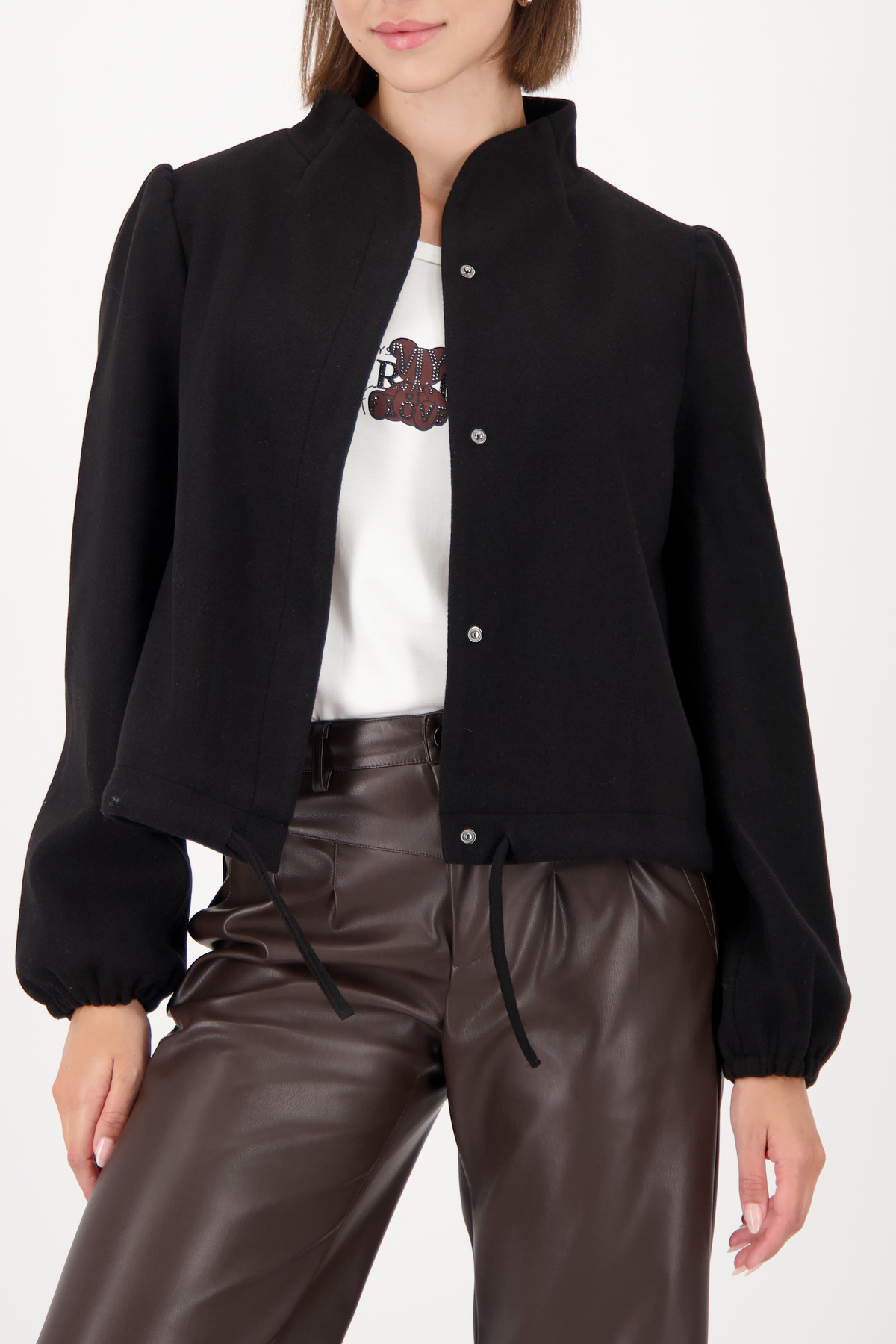 Этот стильный жакет с эффектом «шерсти» очаровывает завитками на плечах и поясом на талии. Он идеально подойдет для любого случая.